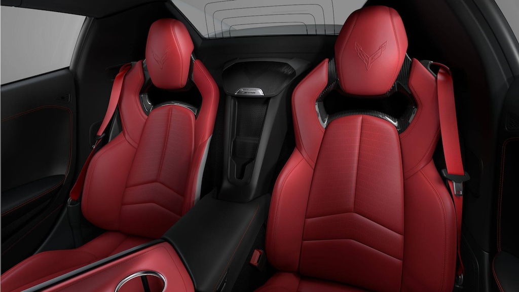 14 Speakers, 2 Cargo Nets, 3 Years SiriusXM, 4-Wheel Disc Brakes, 8-Way Power Driver Seat Adjuster, 8-Way Power Passenger Seat Adjuster, ABS brakes, Adaptive suspension, Air Conditioning, Alloy wheels, AM/FM radio: SiriusXM, Auto High-beam Headlights, Auto-dimming door mirrors, Auto-dimming Rear-View mirror, Automatic Leveling System Headlamp Control, Automatic temperature control, Black Exhaust Tips, Bose Performance Series Sound System with 14 Speakers, Brake assist, Bumpers: body-color, Carbon Fiber Interior Trim, Compass, Convertible Engine Appearance Package, Convertible HardTop, Convertible roof lining, Delay-off headlights, Driver door bin, Driver Power Bolster Seat Adjuster, Driver vanity mirror, Dual front impact airbags, Dual front side impact airbags, Edge Red Full Length Dual Racing Stripes, Edge Red-Painted Calipers, Electrical Theft Deterrent System, Electronic Stability Control, Emergency communication system: OnStar and Chevrolet connected services capable, Engine Specification Plaque, Exterior Parking Camera Rear, Four wheel independent suspension, Front anti-roll bar, Front Bucket Seats, Front Center Armrest, Front dual zone A/C, Front License Plate Bracket, Front Lift Adjustable Height with Memory, Front reading lights, Fully automatic headlights, Garage door transmitter, Glass rear window, GT1 Bucket Seats, GT2 Bucket Seats, HD Front and Rear Vision Cameras, Heads-Up Display, Heated and Vented Driver and Passenger Seats, Heated door mirrors, Heated front seats, Heated Steering Wheel, Heated steering wheel, Illuminated entry, Integrated roll-over protection, Leather Shift Knob, Leather steering wheel, Low tire pressure warning, Memory Driver and Passenger Convenience Package, Memory seat, Mulan Leather Seating Surfaces with Perforated Inserts, Navigation System, Occupant sensing airbag, Outside temperature display, Overhead console, Panic alarm, Passenger door bin, Passenger Power Bolster Seat Adjuster, Passenger vanity mirror, Performance Data and Video Recorder, Power convertible roof, Power door mirrors, Power Driver Lumbar Control Seat Adjuster, Power driver seat, Power Passenger Lumbar Control Seat Adjuster, Power passenger seat, Power steering, Power windows, Power-Adjustable Outside Heated Mirrors, Preferred Equipment Group 2LZ, Premium audio system: Chevrolet Infotainment 3 Premium, Radio data system, Radio: Infotainment System with Google Built-in, Rear anti-roll bar, Rear Cross Traffic Alert, Rear window defroster, Red Engine Intake, Remote keyless entry, Security system, Side Blind Zone Alert, Speed control, Speed-sensing steering, Spoiler, Sport steering wheel, Stealth Interior Trim Package, Steering wheel memory, Steering wheel mounted audio controls, Tachometer, Telescoping steering wheel, Tilt steering wheel, Torch Red Seat Belt Color, Traction control, Trip computer, Turn signal indicator mirrors, Universal Home Remote, Variably intermittent wipers, Vehicle Inclination Theft Deterrent Sensor, Vehicle Interior Movement Theft Deterrent Sensor, Ventilated front seats, Voltmeter, Wheels: 20 x 10 Front and 21 x 13 Rear Black, Wheels: 20 x 10 Front and 21 x 13 Rear Titanium Satin, Wireless Phone Charging.