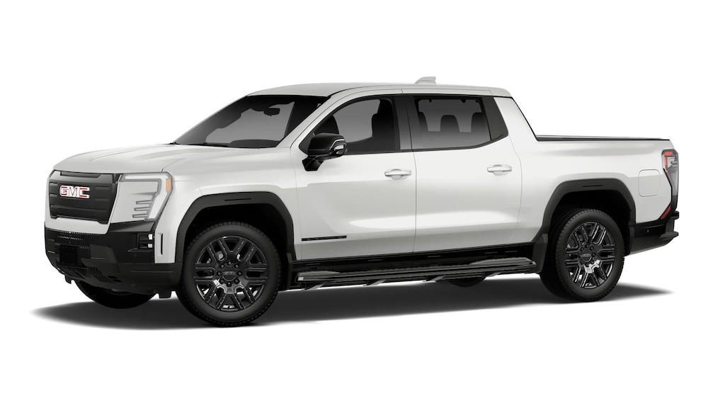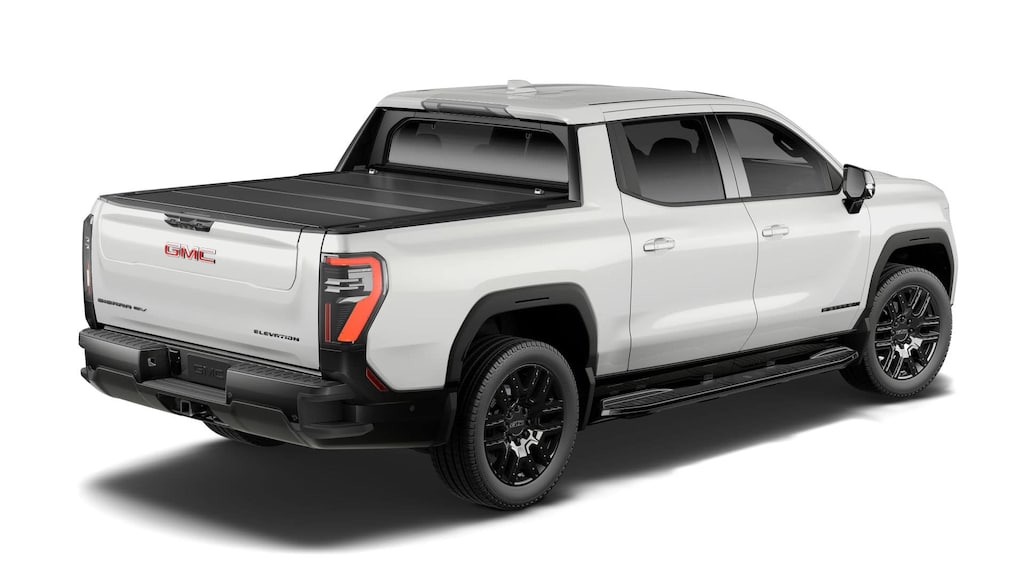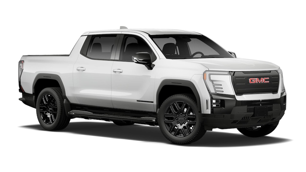 Summit White 2026 GMC Sierra EV Elevation AWD 1-Speed Automatic Electric Motor 11.63 Axle Ratio, 22 Black Painted Aluminum Wheels, 4 Bed Mounted 120-Volt Power Outlets, 4-Way Manual Front Passenger Seat Adjuster, 4-Wheel Disc Brakes, 6 Speakers, 6-Speaker Audio System Feature, 8-Way Power Driver Seat Adjuster, 8-Way Power Front Passenger Seat Adjuster, ABS brakes, Air Conditioning, Alloy wheels, AM/FM radio: SiriusXM with 360L, Auto High-beam Headlights, Auto-dimming Rear-View mirror, Automatic temperature control, Bed View Camera, Bed-Mounted 240-Volt Power Outlet, Blind Zone Steering Assist, Blind Zone Steering Assist with Trailering, Brake assist, Bumpers: body-color, Cargo Lamps, Comfort and Convenience Package, CoreTec Seating Surfaces, Delay-off headlights, Driver 2-Way Power Lumbar Seat Adjuster, Driver 4-Way Power Lumbar Seat Adjuster, Driver door bin, Driver vanity mirror, Dual front impact airbags, Dual front side impact airbags, Electronic Stability Control, Elevation Dark Package, Emblems, Emergency communication system: OnStar, Extended Range Battery Pack, Four wheel independent suspension, Front and Rear Park Assist, Front anti-roll bar, Front Bucket Seats, Front Bucket Seats with Center Console, Front dual zone A/C, Front License Plate Kit, Front Passenger 4-Way Power Lumbar Seat Adjuster, Front reading lights, Fully automatic headlights, Garage door transmitter, Heated door mirrors, Heated Front Driver and Passenger Seats, Heated front seats, Heated Rear Outboard Passenger Cushion, Heated steering wheel, Inside Rear-View Auto-Dimming Mirror, Low tire pressure warning, Manual Folding Heated Outside Mirrors, Manual Tilt and Telescoping Steering Column, Memory Settings, MulitPro Midgate, Navigation System, Occupant sensing airbag, Outside Heated Power-Adjustable Mirrors, Outside temperature display, Overhead airbag, Overhead console, Panic alarm, Passenger door bin, Passenger vanity mirror, Power door mirrors, Power driver seat, Power steering, Power Tilt and Telescopic Steering Column, Power windows, Preferred Equipment Group 3SC, Premium 7-Speaker Bose Sound System, Premium audio system: Premium GMC Infotainment System, Premium Package, Radio data system, Radio: 16.8 Diagonal Premium GMC Infotainment System, Rain sensing wipers, Rear 60/40 Folding Bench Seat, Rear 60/40 Split Seat with Center Armrest, Rear Camera Mirror, Rear fog lights, Rear reading lights, Rear seat center armrest, Rear step bumper, Rear window defroster, Remote keyless entry, Security system, SiriusXM with 360L Trial Subscription, Smart Trailer Integration Indicator, Speed control, Speed-sensing steering, Split folding rear seat, Sport steering wheel, Spray-on Pickup Bedliner, Standard Suspension, Steering wheel mounted audio controls, Technology Package, Telescoping steering wheel, Tilt steering wheel, Traction control, Trailer Camera Provisions, Trip computer, Variably intermittent wipers, Ventilated Driver and Front Passenger Seats, Wheels: 18 x 8.5 Aluminum Machined Face, Wheels: 22 Transit.