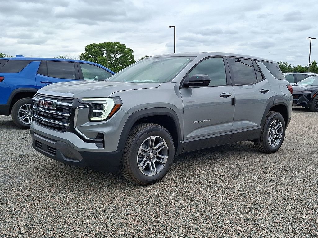 Sterling Metallic 2026 GMC Terrain Elevation FWD CVT 1.5L DOHC 4-Wheel Disc Brakes, 5.81 Final Drive Axle Ratio, 6 Speakers, 6-Speaker Audio System Feature, ABS brakes, Air Conditioning, Alloy wheels, AM/FM radio: SiriusXM, Auto High-beam Headlights, Automatic temperature control, Brake assist, Bumpers: body-color, Compass, Delay-off headlights, Driver 6-Way Manual Seat Adjuster, Driver and Front Passenger Heated Seats, Driver door bin, Driver vanity mirror, Dual front impact airbags, Dual front side impact airbags, Electronic Stability Control, Emergency communication system: OnStar and GMC connected services capable, Four wheel independent suspension, Front anti-roll bar, Front Bucket Seats, Front Center Armrest, Front Passenger 4-Way Manual Seat Adjuster, Front reading lights, Fully automatic headlights, Heated door mirrors, Heated front seats, Heated steering wheel, Illuminated entry, License Plate Front Mounting Package, Low tire pressure warning, Memory seat, Navigation System, Occupant sensing airbag, Outside temperature display, Overhead airbag, Panic alarm, Passenger door bin, Passenger vanity mirror, Power door mirrors, Power steering, Power windows, Preferred Equipment Group 3SA, Premium Cloth Seat Trim, Radio data system, Radio: Premium GMC Infotainment System, Rear air conditioning, Rear anti-roll bar, Rear seat center armrest, Rear window defroster, Rear window wiper, Remote keyless entry, Security system, SiriusXM with 360L Trial Subscription, Speed control, Speed-sensing steering, Split folding rear seat, Spoiler, Sport steering wheel, Steering wheel mounted audio controls, Tachometer, Telescoping steering wheel, Tilt steering wheel, Traction control, Trip computer, Variably intermittent wipers, Wheels: 17 Grazen Metallic Machined Aluminum, Wireless Apple CarPlay/Wireless Android Auto.