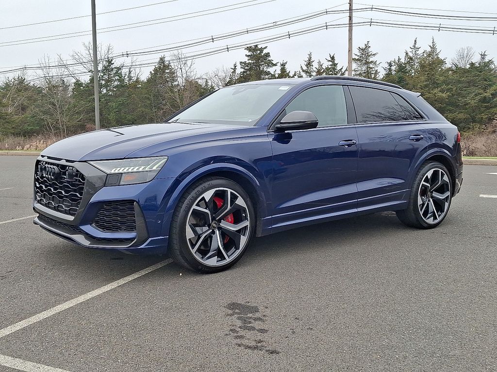 Experience breathtaking power and precision in this 2021 Audi RS Q8, a one-owner performance SUV finished in stunning Navarra Blue Metallic with a refined Black interior. With 48,631 miles and a clean Carfax, this RS Q8 has been meticulously maintained and stands as one of the most exciting SUVs on the road today.