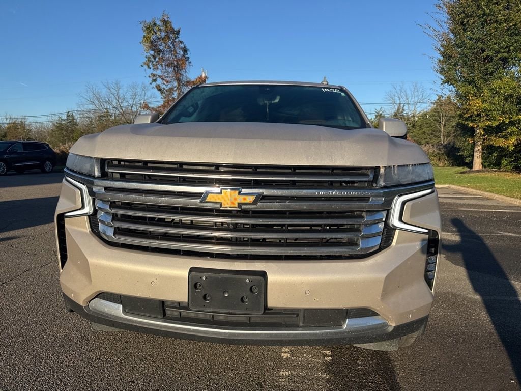 2021 Chevrolet Tahoe High Country Empire Beige Metallic 4WD 10-Speed Automatic with Overdrive EcoTec3 6.2L V84WD, Jet Black/Mocha Leather, 10 Speakers, 12-Way Power Driver & Passenger Seat Adjusters, 15 Diagonal Multi-Color Head-Up Display, 1st & 2nd Row Color-Keyed Carpeted Floor Mats, 2 USB Data Ports, 2-Speed Active Electronic AutoTrac Transfer Case, 3.23 Rear Axle Ratio, 3rd Row 60/40 Power-Folding Split-Bench Seat, 3rd row seats: split-bench, 4-Wheel Disc Brakes, ABS brakes, Adaptive Cruise Control, Adaptive suspension, Advanced Trailering Package, Advanced Trailering System, Air Conditioning, Alloy wheels, AM/FM radio: SiriusXM with 360L, Apple CarPlay/Android Auto, Auto High-beam Headlights, Auto-dimming door mirrors, Auto-dimming Rear-View mirror, Auto-leveling suspension, Automatic Heated Steering Wheel, Automatic temperature control, Bose 10-Speaker Centerpoint Surround Audio Sys Ft, Brake assist, Bright Front & Rear Door Sill Plates, Bumpers: body-color, Chrome Door Handles w/Body-Color Strip, Color-Keyed Carpeting Floor Covering, Compass, Delay-off headlights, Driver & Front Outboard Passenger Airbags, Driver door bin, Driver vanity mirror, Dual Exhaust System, Dual front impact airbags, Dual front side impact airbags, Dual-Pane Power Panoramic Sunroof, Electronic Stability Control, Emergency communication system: OnStar and Chevrolet connected services capable, Enhanced Automatic Emergency Braking, Enhanced Driver Information Center, Extra Capacity Cooling System, Floor Console w/Storage Area, Four wheel independent suspension, Front & Rear Park Assist, Front anti-roll bar, Front Bucket Seats, Front Center Armrest, Front dual zone A/C, Front High-Back Reclining Bucket Seats, Front reading lights, Fully automatic headlights, Garage door transmitter, Hands-Free Rear Power Programmable Liftgate, HD Radio, HD Surround Vision, Heads-Up Display, Heated & Ventilated Driver & Front Passenger Seats, Heated 2nd Row Outboard Seats, Heated door mirrors, Heated Driver & Front Passenger Seats, Heated front seats, Heated rear seats, Heated steering wheel, Hill Descent Control, Hitch Guidance w/Hitch View, Illuminated entry, Infotainment Display, Inside Rearview Auto-Dimming Rear Camera Mirror, Integrated Trailer Brake Controller, Lane Change Alert w/Side Blind Zone Alert, Lane Keep Assist w/Lane Departure Warning, Leather steering wheel, Leather-Wrapped Steering Wheel, LED Daytime Running Lamps, License Plate Front Mounting Package, Low tire pressure warning, Magnetic Ride Control Suspension, Max Trailering Package, Memory seat, Memory Settings, Navigation System, Occupant sensing airbag, Outside Heated Power-Adjustable Mirrors, Outside temperature display, Overhead airbag, Overhead console, Panic alarm, Passenger door bin, Passenger vanity mirror, Perforated Leather Seat Trim, Power door mirrors, Power driver seat, Power Liftgate, Power passenger seat, Power Release 2nd Row Bucket Seats, Power steering, Power Tilt & Telescopic Steering Column, Power windows, Power-Retractable Assist Steps, Preferred Equipment Group 3LZ, Premium audio system: Chevrolet Infotainment 3, Premium Package, Radio: Chevrolet Infotainment 3 Premium System, Rain sensing wipers, Rear air conditioning, Rear anti-roll bar, Rear Camera Mirror Washer, Rear Cross Traffic Alert, Rear Pedestrian Alert, Rear reading lights, Rear Seat Media System, Rear window defroster, Rear window wiper, Remote keyless entry, Remote Start, Roof rack: rails only, Safety Alert Seat, Security system, Set of 4 Wheel Locks (LPO), SiriusXM NavTraffic, SiriusXM Radio w/360L, Speed control, Speed-sensing steering, Split folding rear seat, Spoiler, Steering wheel memory, Steering wheel mounted audio controls, Tachometer, Telescoping steering wheel, Tilt steering wheel, Traction control, Trailer Side Blind Zone Alert, Trip computer, Turn signal indicator mirrors, Universal Home Remote, Variably intermittent wipers, Ventilated front seats, Voltmeter, Wheels: 22 x 9 Sterling Silv