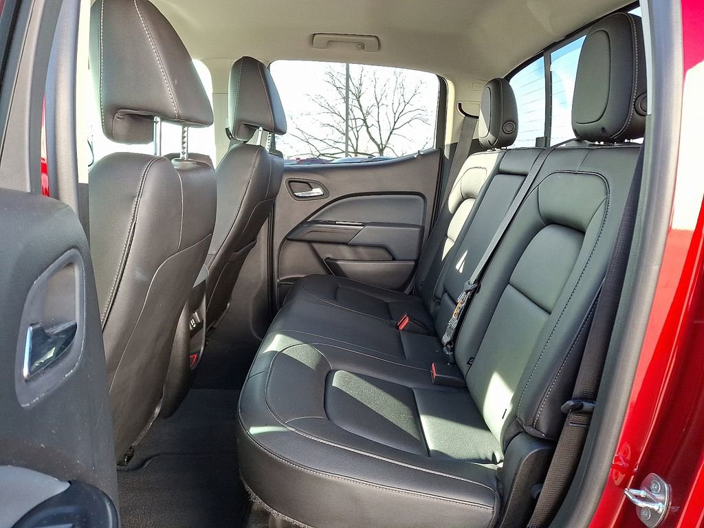 This Colorado comes equipped with the sought-after Trail Boss Package, adding a suspension leveling kit, front skid plate, black tailgate lettering, black Colorado rear emblem, mid skid plate, 17 wheels, and more. It also features a tonneau cover and running boards for added functionality and style. Inside, you'll find leather seating along with the Safety Package, which includes forward collision alert and lane departure warning.