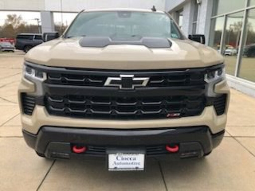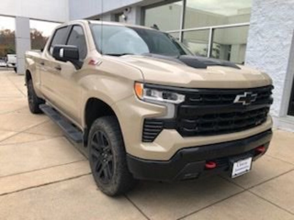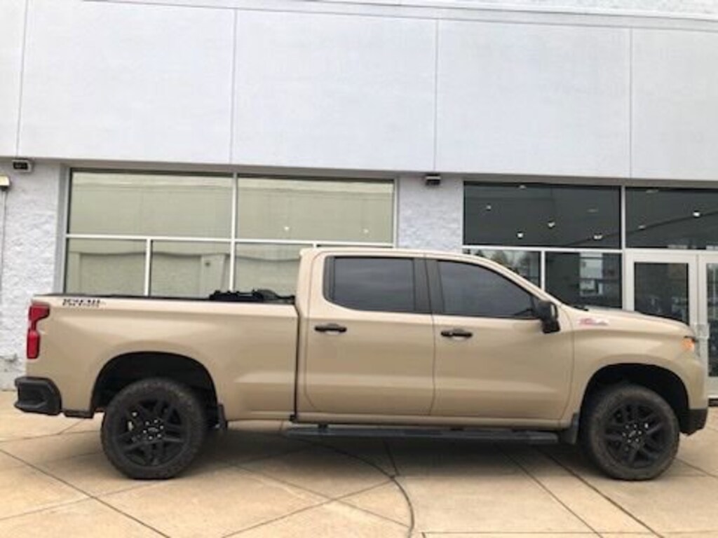 2022 Chevrolet Silverado 1500 LT Trail Boss Sand Dune Metallic 4WD 10-Speed Automatic EcoTec3 5.3L V810-Speed Automatic, 4WD, Black Leather, 10-Way Power Driver Seat w/Lumbar, 12.3 Multicolor Reconfigurable Digital Display, 120-Volt Bed Mounted Power Outlet, 120-Volt Instrument Panel Power Outlet, 170 Amp Alternator, 2 USB Data Ports, 220 Amp Alternator, 4-Wheel Disc Brakes, 40/20/40 Front Split-Bench Seat, 6 Speakers, 6-Speaker Audio System, 6 Rectangular Black Tubular Assist Steps (LPO), ABS brakes, Air Conditioning, All-Weather Floor Liner (LPO) (AAK), Alloy wheels, AM/FM radio: SiriusXM with 360L, Apple CarPlay/Android Auto, Auto High-beam Headlights, Auto-Locking Rear Differential, Automatic Emergency Braking, Automatic temperature control, Auxiliary External Transmission Oil Cooler, Black Name Plates (LPO), Black Tailgate CHEVROLET Lettering (LPO), Bluetooth® For Phone, Brake assist, Chevrolet Connected Access Capable, Chevytec Spray-On Black Bedliner, Cloth Seat Trim, Color-Keyed Carpeting Floor Covering, Compass, Convenience Package, Convenience Package II, Dark Essentials Package (LPO), Deep-Tinted Glass, Delay-off headlights, Driver door bin, Driver vanity mirror, Dual Exhaust w/Polished Outlets, Dual front impact airbags, Dual front side impact airbags, Dual Rear USB Ports (Charge Only), Dual-Zone Automatic Climate Control, Electric Rear-Window Defogger, Electrical Steering Column Lock, Electronic Cruise Control, Electronic Stability Control, Electronic Transmission Range Selector Shifter, External Engine Oil Cooler, EZ Lift Power Lock & Release Tailgate, Floor Mounted Center Console, Following Distance Indicator, Forward Collision Alert, Front anti-roll bar, Front Bucket Seats, Front Center Armrest w/Storage, Front dual zone A/C, Front fog lights, Front LED Fog Lamps, Front Pedestrian Braking, Front reading lights, Front wheel independent suspension, Fully automatic headlights, Hard-Folding Tonneau Cover (LPO), HD Rear Vision Camera, HD Surround Vision, Heated door mirrors, Heated Driver & Front Outboard Passenger Seats, Heated front seats, Heated Power-Adjustable Outside Mirrors, Heated Steering Wheel, Heated steering wheel, Heavy-Duty Air Filter, High Gloss Black Mirror Caps, Hill Descent Control, Hitch Guidance, Hitch Guidance w/Hitch View, Illuminated entry, Inside Rear-View Mirror w/Tilt, Integrated Trailer Brake Controller, IntelliBeam Automatic High Beam On/Off, Keyless Open & Start, Lane Keep Assist w/Lane Departure Warning, Leather Package, Leather Wrapped Steering Wheel, LED Cargo Area Lighting, Low tire pressure warning, LT Trail Boss Premium Package, Manual Tilt/Telescoping Steering Column, Not Equipped w/Dynamic Fuel Management, Not Equipped w/Rear Park Assist, Occupant sensing airbag, OnStar & Chevrolet Connected Services Capable, Outside temperature display, Overhead airbag, Overhead console, Panic alarm, Passenger door bin, Passenger vanity mirror, Performance Red Recovery Hooks, Perimeter Lighting, Power door mirrors, Power driver seat, Power Front Windows w/Driver Express Up/Down, Power Front Windows w/Passenger Express Down, Power Rear Windows w/Express Down, Power Sliding Rear Window w/Rear Defogger, Power steering, Power Sunroof, Power Tailgate, Power windows, Preferred Equipment Group 2LT, Premium audio system: Chevrolet Infotainment 3 Premium, Premium Bose 7-Speaker Sound System, Protection Package, Radio data system, Radio: Chevrolet Infotainment 3 Premium System, Rear 60/40 Folding Bench Seat (Folds Up), Rear Cross Traffic Alert-Braking, Rear Park Assist, Rear Pedestrian Detection, Rear reading lights, Rear step bumper, Rear Wheelhouse Liners, Rear window defroster, Remote keyless entry, Remote Vehicle Starter System, Safety Package, Security system, SiriusXM w/360L, Speed control, Speed-sensing steering, Split folding rear seat, Standard Tailgate, Steering Wheel Audio Controls, Steering wheel mounted audio controls, Suspension Package, Tachometer, Telescoping steering wheel, The