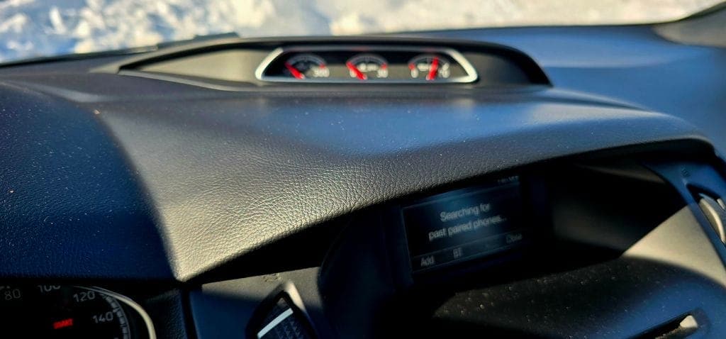 4-Wheel Disc Brakes, 6 Speakers, ABS brakes, Air Conditioning, Alloy wheels, AM/FM radio, AM/FM/CD/MP3 Radio, Brake assist, Bumpers: body-color, CD player, Cloth Sport Seats w/Unique ST Logo, Compass, Delay-off headlights, Driver door bin, Driver vanity mirror, Dual front impact airbags, Dual front side impact airbags, Electronic Stability Control, Emergency communication system: 911 Assist, Equipment Group 400A, Exterior Parking Camera Rear, Four wheel independent suspension, Front anti-roll bar, Front Bucket Seats, Front Center Armrest, Front fog lights, Front reading lights, Fully automatic headlights, Illuminated entry, Knee airbag, Leather steering wheel, Low tire pressure warning, Occupant sensing airbag, Outside temperature display, Overhead airbag, Panic alarm, Passenger door bin, Passenger vanity mirror, Power door mirrors, Power steering, Power windows, Radio data system, Rear anti-roll bar, Rear window defroster, Rear window wiper, Remote keyless entry, Security system, Speed control, Split folding rear seat, Spoiler, Steering wheel mounted audio controls, SYNC Communications & Entertainment System, Tachometer, Telescoping steering wheel, Tilt steering wheel, Traction control, Trip computer, Turn signal indicator mirrors, Variably intermittent wipers, Wheels: 18" Rado Gray Alloy.