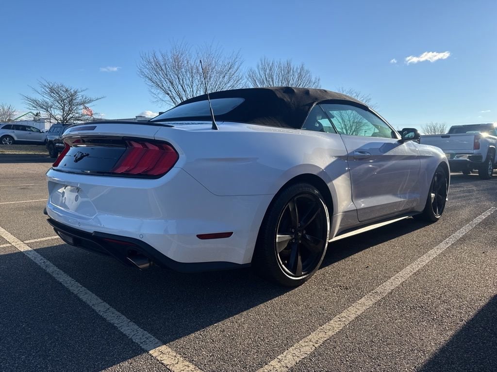 4-Wheel Disc Brakes, ABS brakes, Air Conditioning, Alloy wheels, AM/FM Stereo, Auto High-beam Headlights, Auto-dimming Rear-View mirror, Black Accent Package, Black Front & Rear Pony Badges, Black Mirror Caps, Brake assist, Bumpers: body-color, Compass, Convertible roof lining, Delay-off headlights, Driver door bin, Driver vanity mirror, Dual front impact airbags, Dual front side impact airbags, Electronic Stability Control, Emergency communication system: 911 Assist, Exterior Parking Camera Rear, Four wheel independent suspension, Front anti-roll bar, Front Bucket Seats, Front Center Armrest, Front reading lights, Fully automatic headlights, Glass rear window, Illuminated entry, Knee airbag, Leather Shift Knob, Low tire pressure warning, Occupant sensing airbag, Outside temperature display, Overhead console, Panic alarm, Passenger door bin, Passenger vanity mirror, Power convertible roof, Power door mirrors, Power steering, Power windows, Premium Floor Liners Front & Rear, Radio data system, Rain sensing wipers, Rear anti-roll bar, Rear window defroster, Remote keyless entry, Security system, SiriusXM Radio, Speed control, Speed-sensing steering, Speed-Sensitive Wipers, Steering wheel mounted audio controls, SYNC 3 Communications & Entertainment System, Tachometer, Telescoping steering wheel, Tilt steering wheel, Traction control, Trip computer, Variably intermittent wipers, Voltmeter, Wheels: 18 x 8 Machined-Face Aluminum, Wheels: 19 x 8.5 Ebony Black-Painted Aluminum.