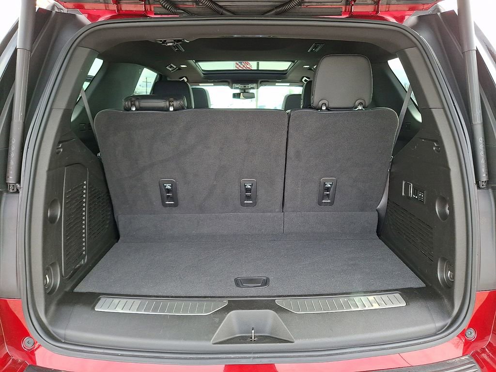 Step inside and be captivated by the luxurious Jet Black interior, featuring 14 Bose Surround Sound speakers, a Heads-Up Display, and a state-of-the-art Infotainment system with Apple CarPlay and Android Auto. Enjoy the unparalleled comfort of heated and ventilated front seats, as well as a heated steering wheel and a power-folding third-row bench.