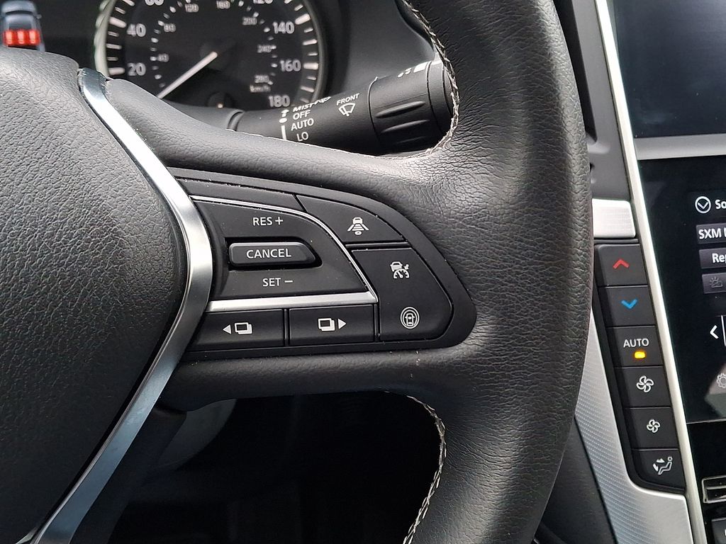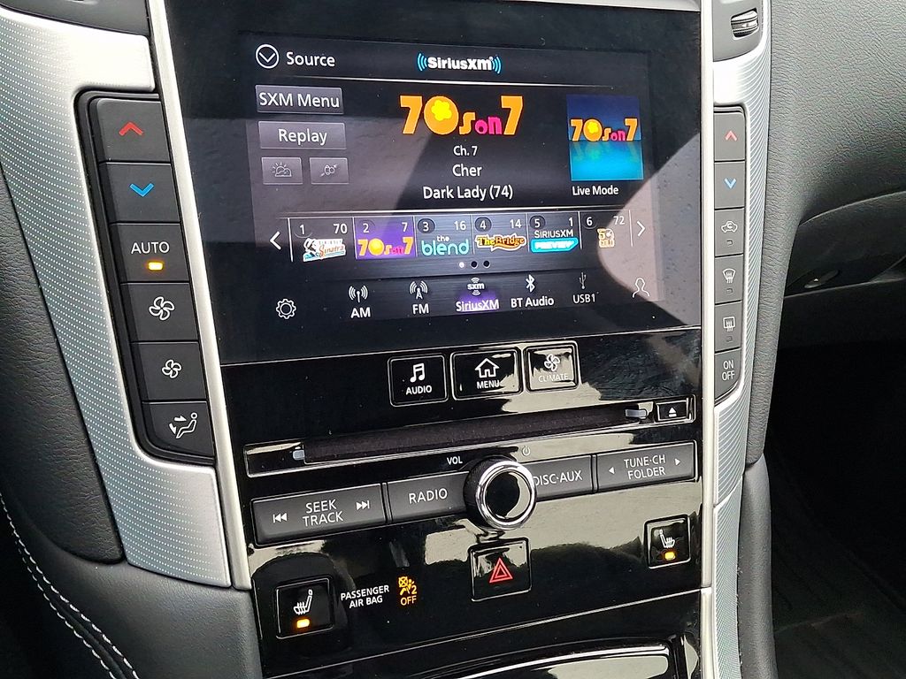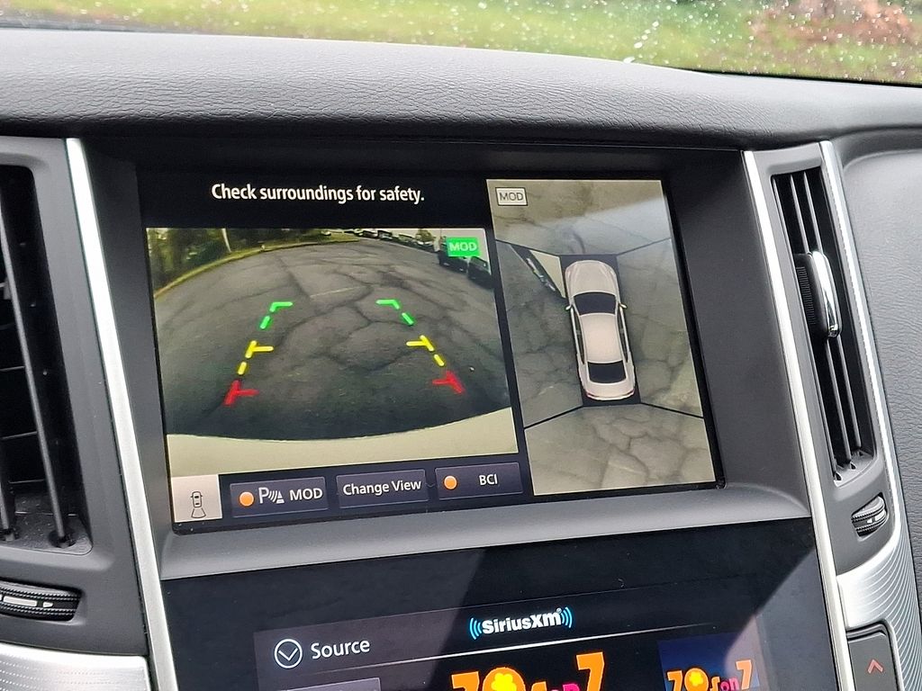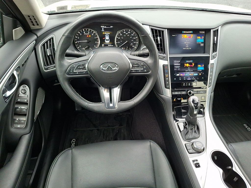 Safety is paramount in the Q50 LUXE, with features like Dual Front Impact Airbags, Dual Front Side Impact Airbags, Overhead Airbag, and Occupant Sensing Airbag. The Electronic Stability Control, Traction Control, and 4-Wheel Disc Brakes with ABS ensure confident handling and responsive braking, while the Blind Spot Warning and Rear Cross-Traffic Alert provide added peace of mind.
