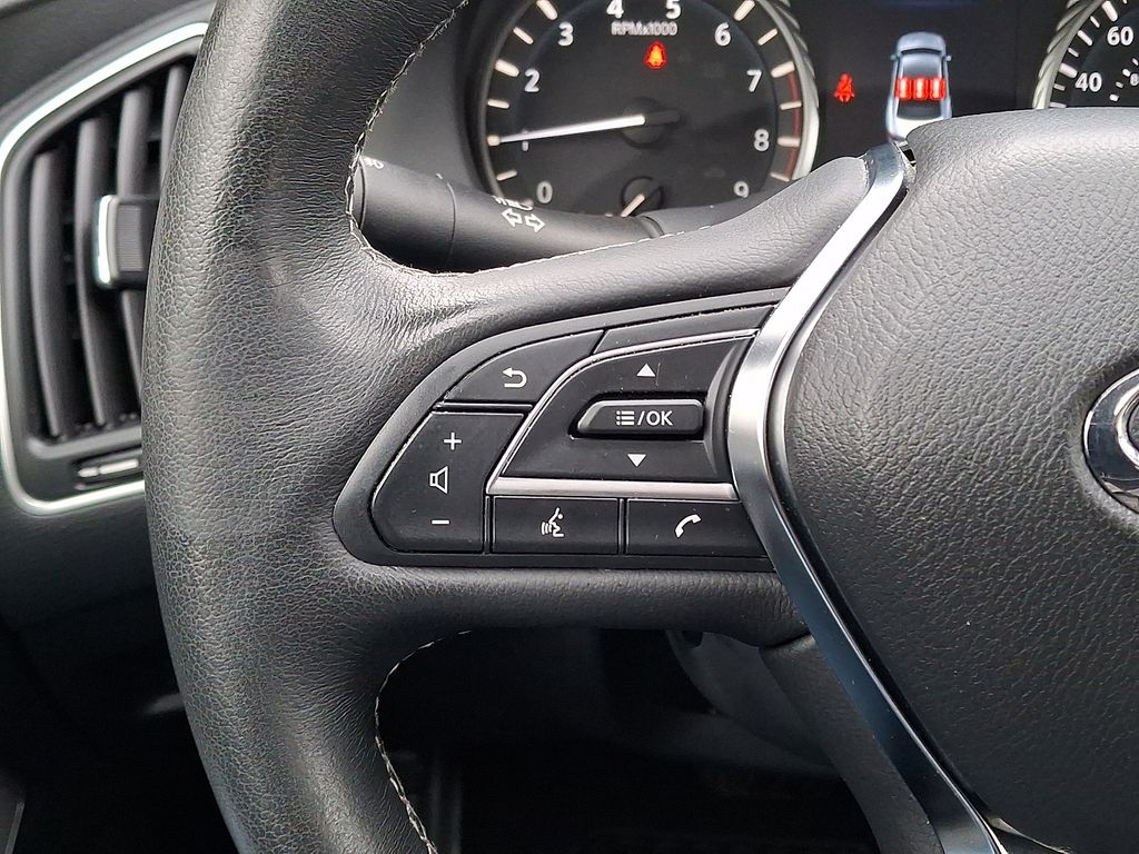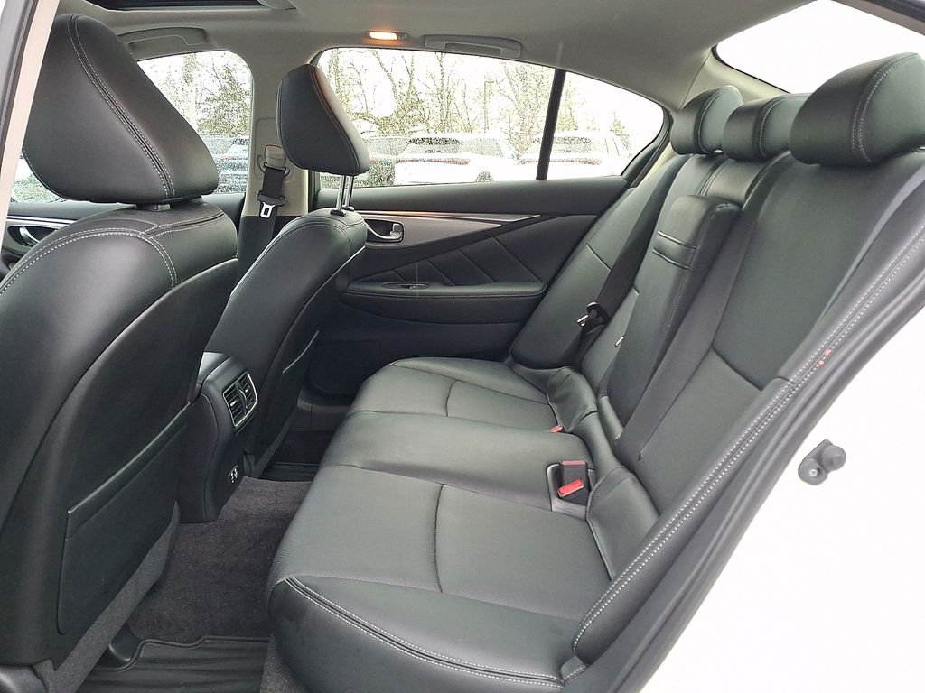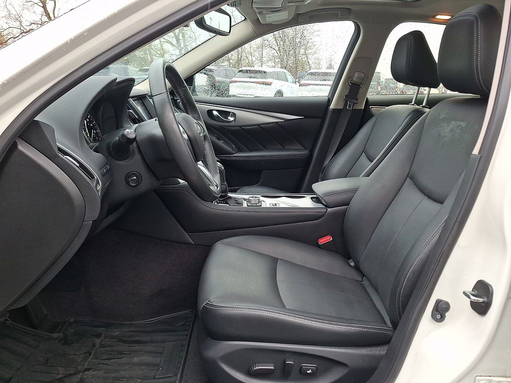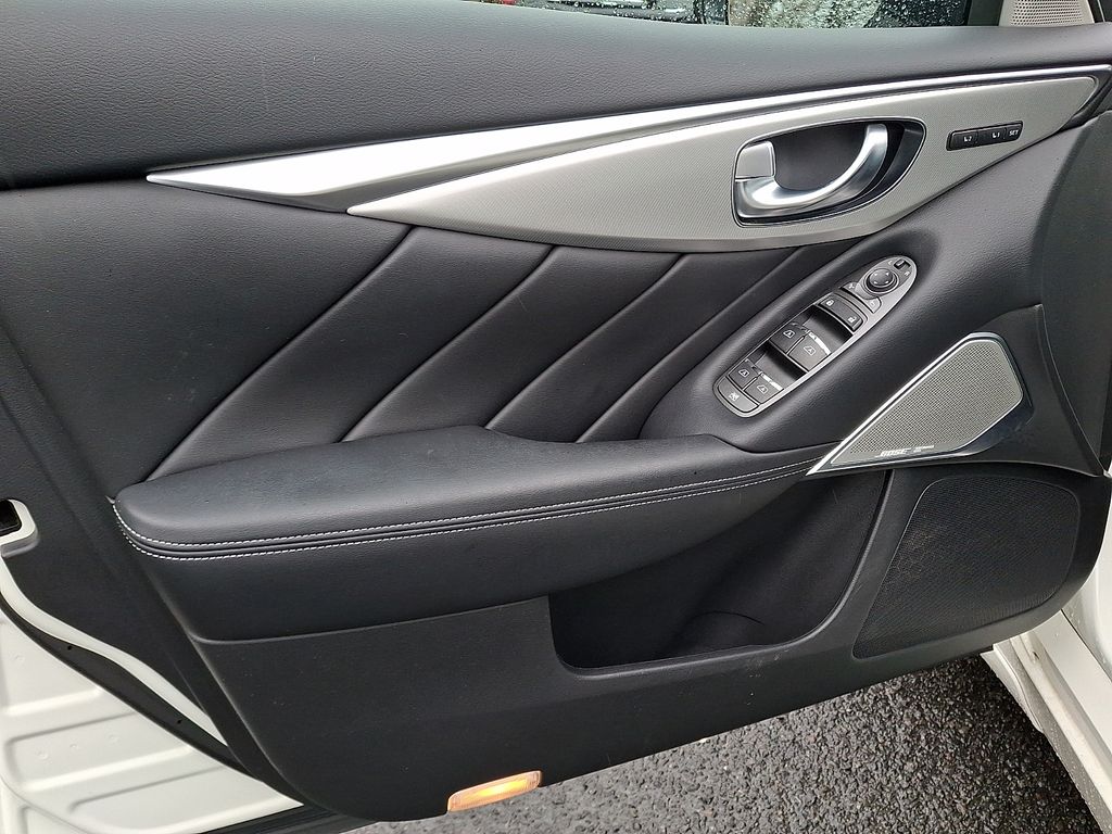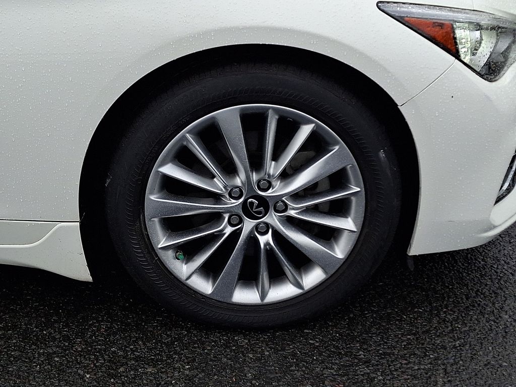 Safety is paramount in the Q50 LUXE, with features like Dual Front Impact Airbags, Dual Front Side Impact Airbags, Overhead Airbag, and Occupant Sensing Airbag. The Electronic Stability Control, Traction Control, and 4-Wheel Disc Brakes with ABS ensure confident handling and responsive braking, while the Blind Spot Warning and Rear Cross-Traffic Alert provide added peace of mind.
